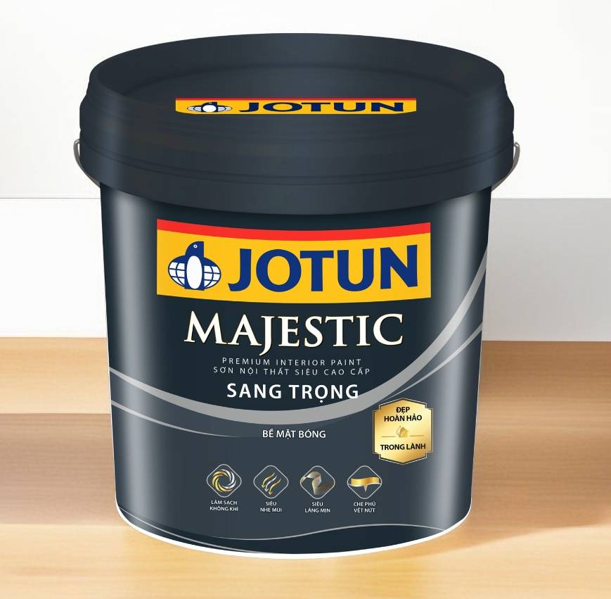 Majestic Bóng Sang Trọng là sản phẩm sơn nội thất siêu cao cấp của Jotun đem lại màu sắc rực rỡ, tạo nét sang trọng và kháng khuẩn tối ưu cho ngôi nhà bạn. Tính năng che phủ vết nứt che phủ những khiếm khuyết của bề mặt tường, giúp tường nhà luôn nhẵn mịn như lụa. Sản phẩm được kiểm nghiệm hạn chế tối đa việc phát sinh những chất nguy hại sau khi sơn và gần như không mùi. Với công thức công nghệ màu đíchh thực và thành phần nguyên vật liệu đặc biệt của Jotun đảm bảo màu sơn Majestic luôn chính xác, đồng nhất và không bị phai màu. Jotun luôn cam kết đáp ứng những tiêu chuẩn cao nhất nhằm mang lại sản phẩm thân thiện với môi trường và sức khoẻ người tiêu dùng.